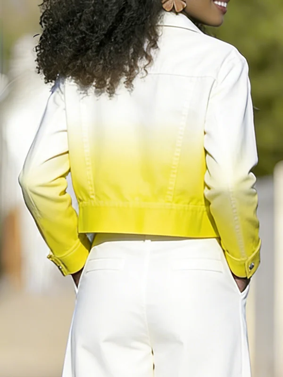Long Sleeves Buttoned Gradient Zipper Lapel Outerwear