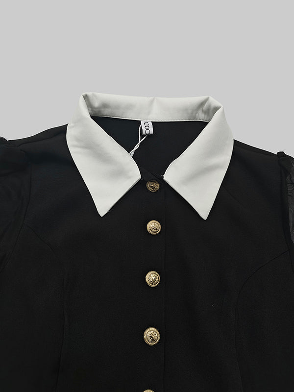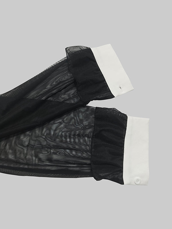Long Sleeves Buttoned See-Through Solid Color Split-Side Lapel Maxi Dresses Shirt Dress