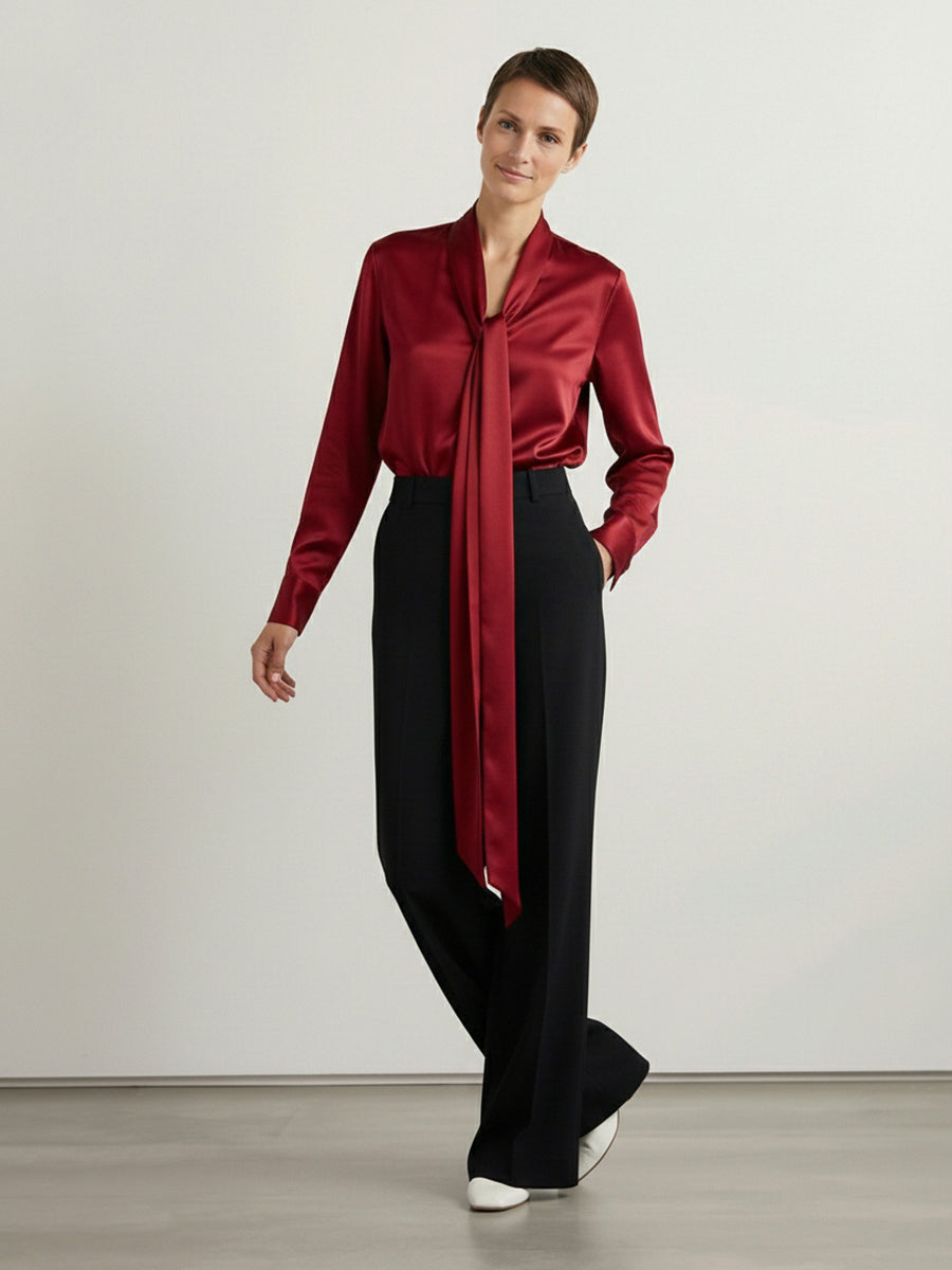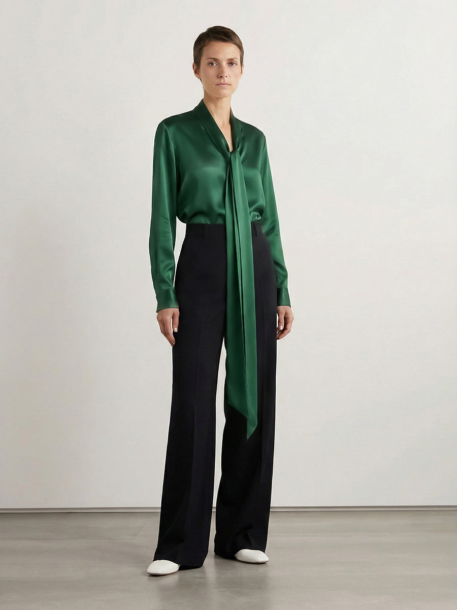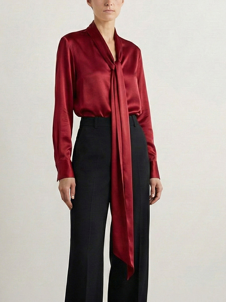 Long Sleeves Loose Solid Color Streamer V-Neck Blouses&Shirts Tops