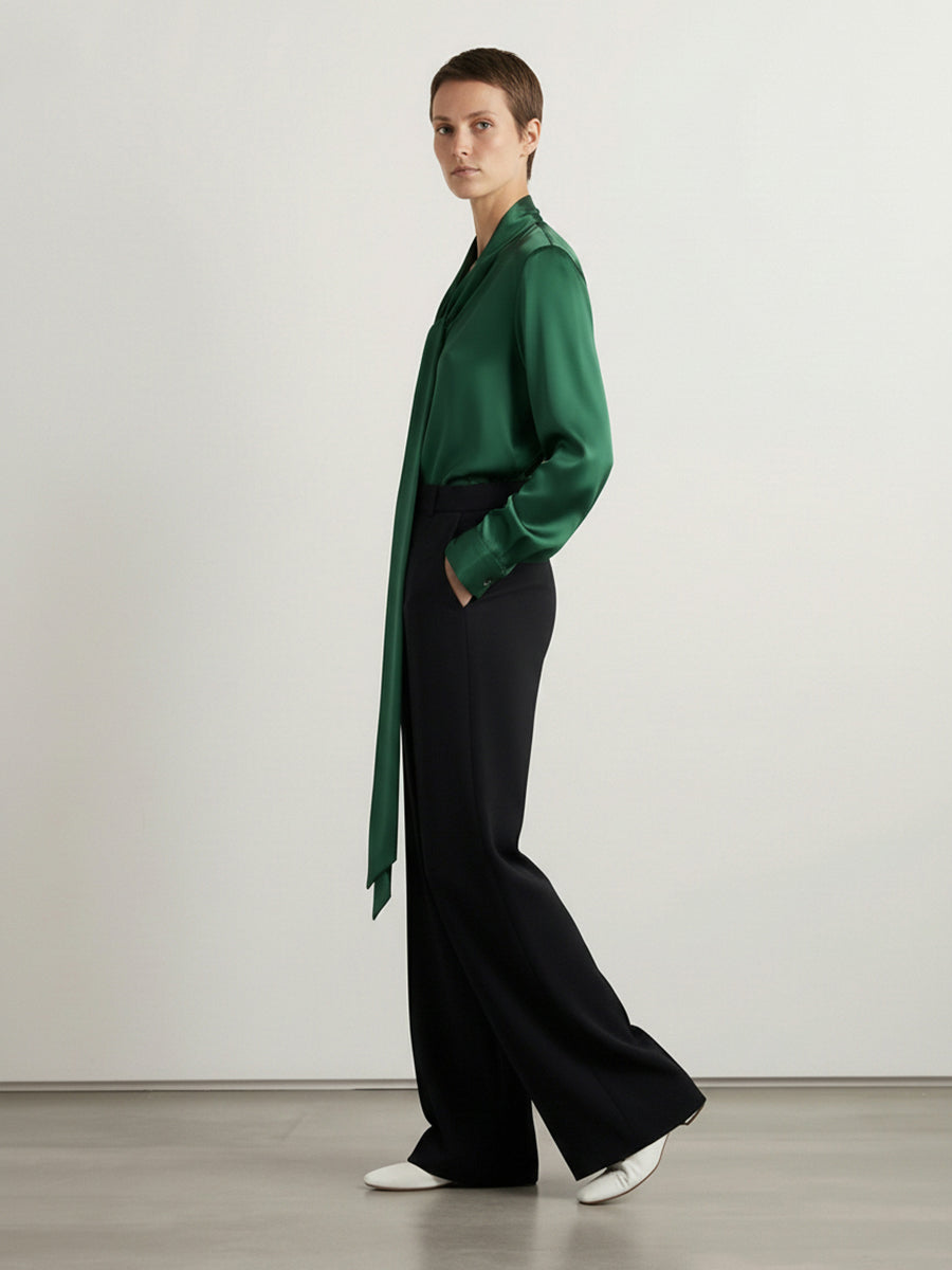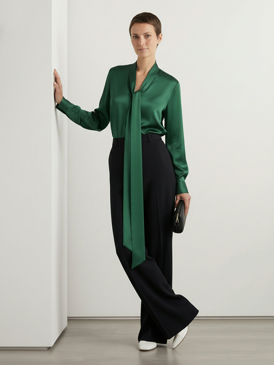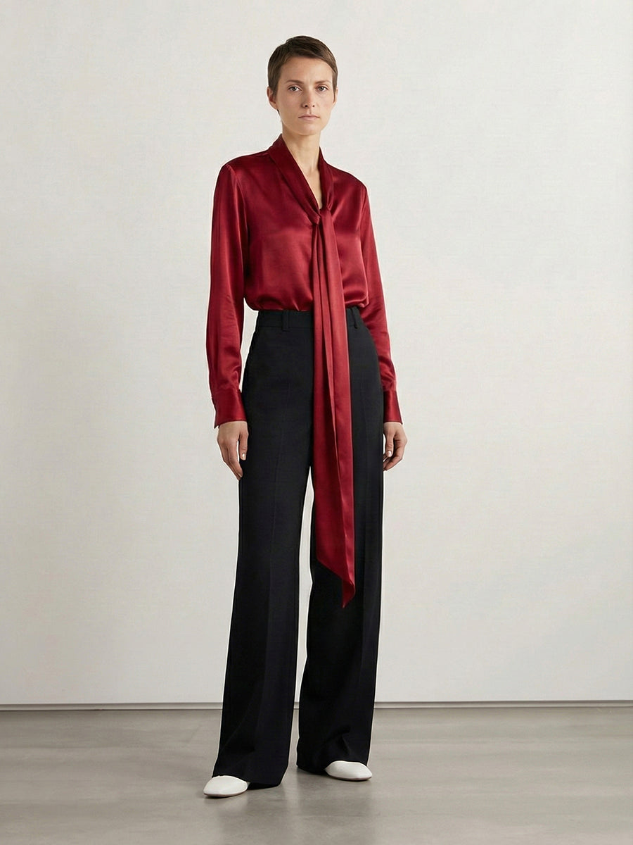 Long Sleeves Loose Solid Color Streamer V-Neck Blouses&Shirts Tops