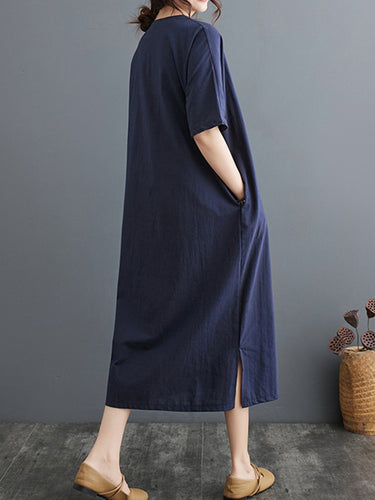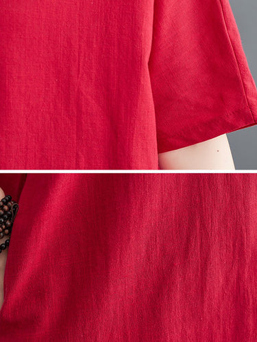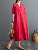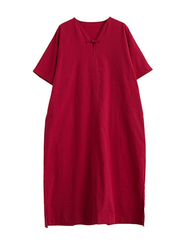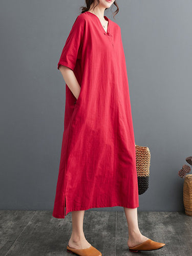 Pocchi di rana cinese sciolti a-line tasche di colore a v-scollo a V-lato split-side