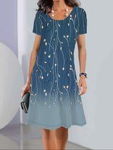 A-line stampato a fiore sciolto mini abiti rotondi