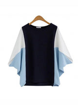 Maniche a batwing a contrasto sciolto color topi time a collo rotondo diviso