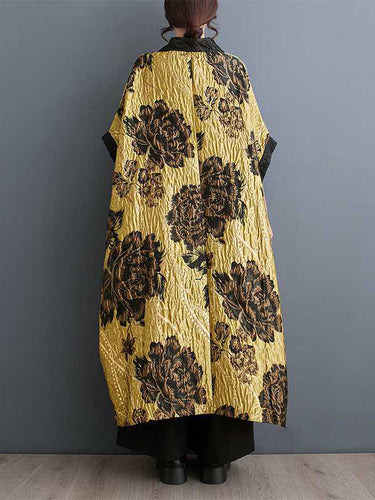 Maniche da batwing sciolte bottoni di rana cinese con barba da fiori pieghettate pieghettate.
