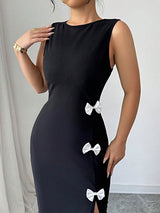 Abiti midi rotondi con bowknot a vita alta