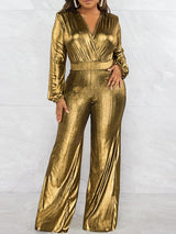 Bodycon ad alta elasticità in vita ad alta elasticità Shiny Solid Color Visuit di scollo a V