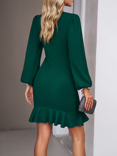 Bodycon maniche lunghe Falbala Mini abiti di colore solido