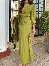 BodyCon Abiti maxi di colore a V-Neck Abite a V per colore manicotto a nove minuti