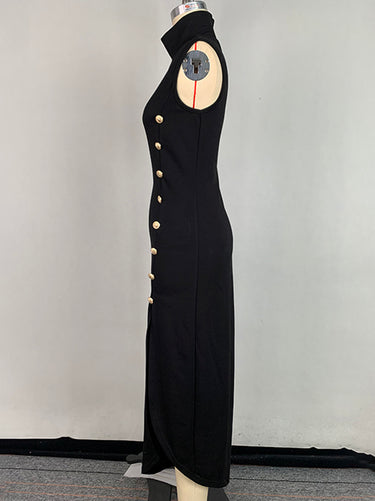 Bodycon Sleeveveless abbottigliato a colori massicci di colore a collo alto Maxi Abiti