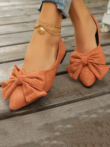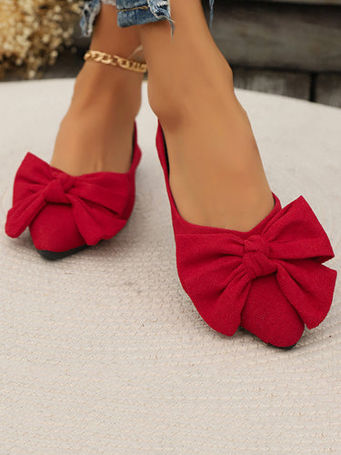 Scarpe pianeggiate a pieghe con punta a punta di bowknot