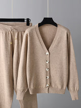 Tops e pantaloni di cardigan a v-scollo sciolti casual e pantaloni harem due pezzi set