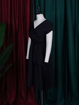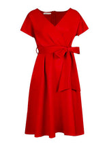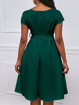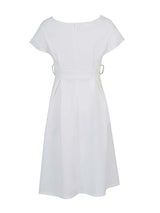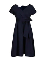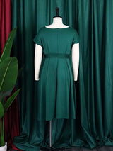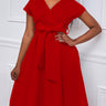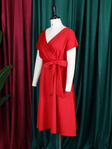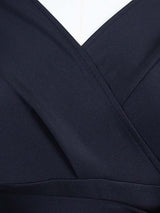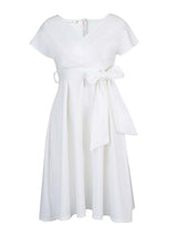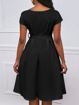Bowknot Lace-up Solid Color V-Neck Midi Abites