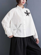 Maniche lunghe Applique sciolte abbottonate camicette e camicie ricamato