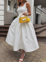 Tasche a pieghe a vita alta a-linea abiti midi spaghetti-neck