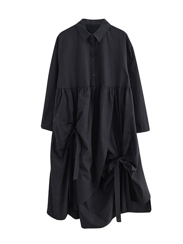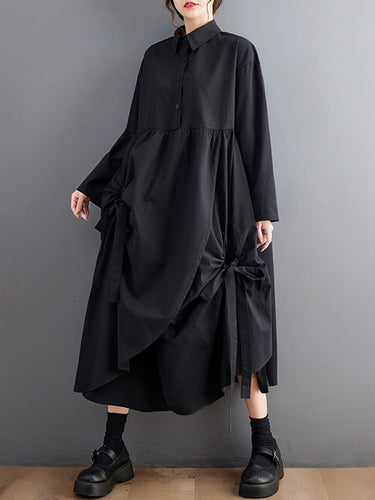 Tasche a maniche lunghe a-line abbottini abbottonati di colore solido abito midi abito con camicia midi