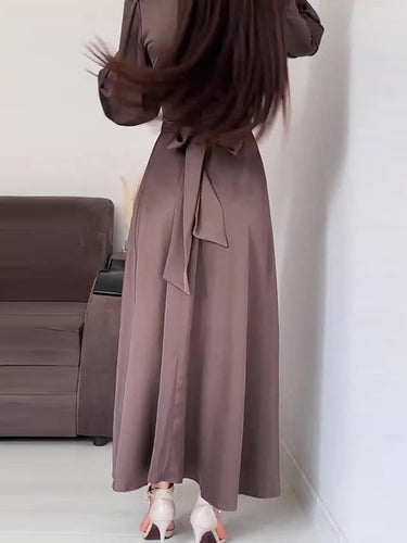 Maniche lunghe a-line pieghette pieghettate con cerniera legata con cerniera maxi abiti maxi