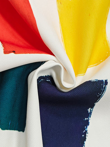 Tasche a colori a contrasto allentati a livello di abiti midi a collo rotondo