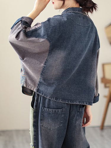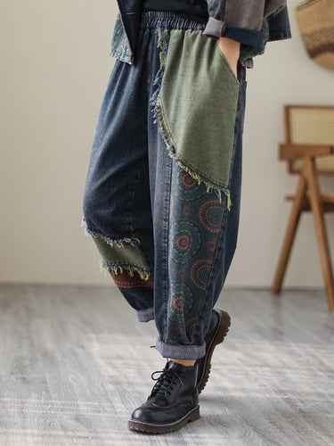 Contrasto Colore Sfritto con frantumi a maniche lunghe con giunta stampata + pantaloni harem due pezzi set