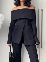 Maniche lunghe Colore solido Split-front-front-giunto Off-the-Shoulder Blazer