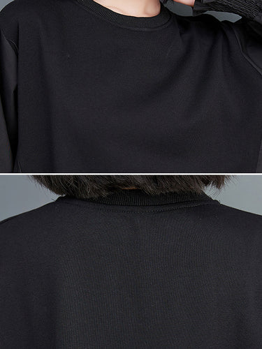 Maniche a soffio sciolte colorate a pieghe di colore midi a collo rotondo diviso