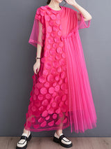 Maniche corte sciolte di garza asimmetriche abiti midi a collo rotondo diviso