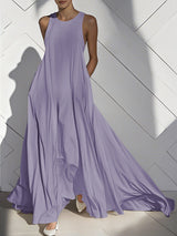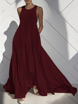 Tasche senza maniche sciolte vestiti maxi rotondi di colore split-giunto