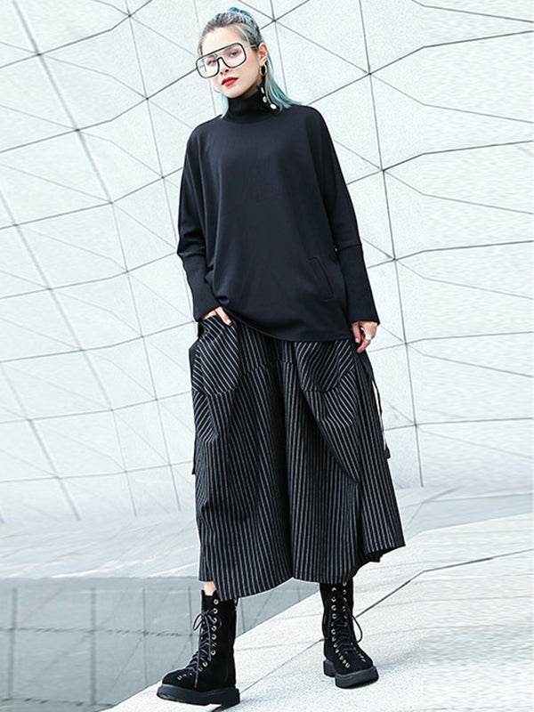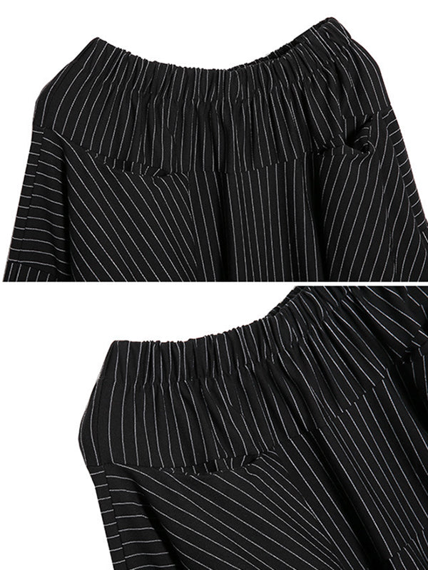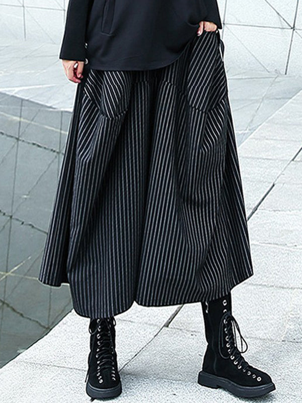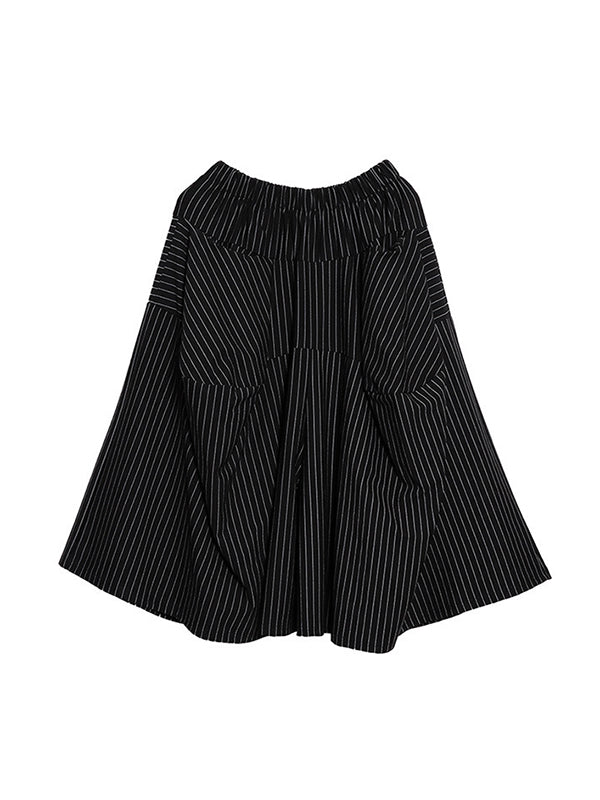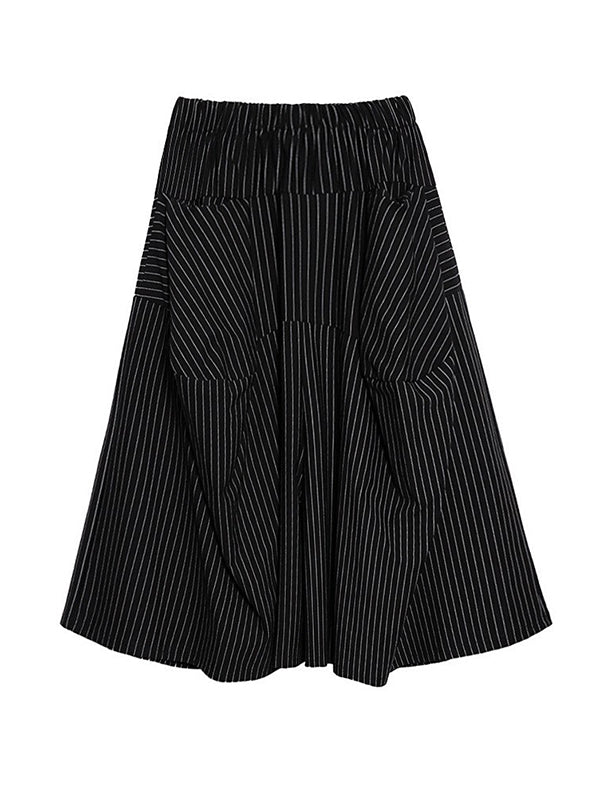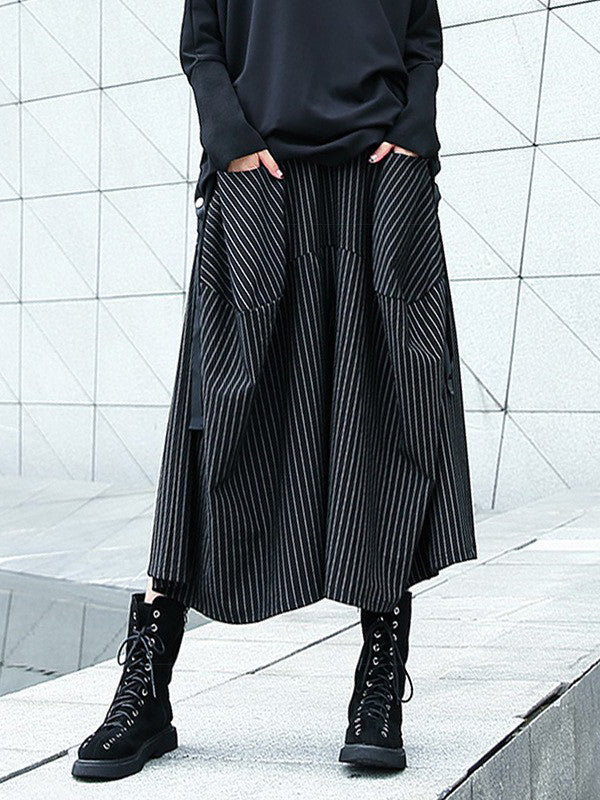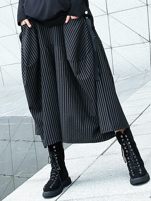 High Waisted Loose Elasticity Pockets Striped Culotte Pants