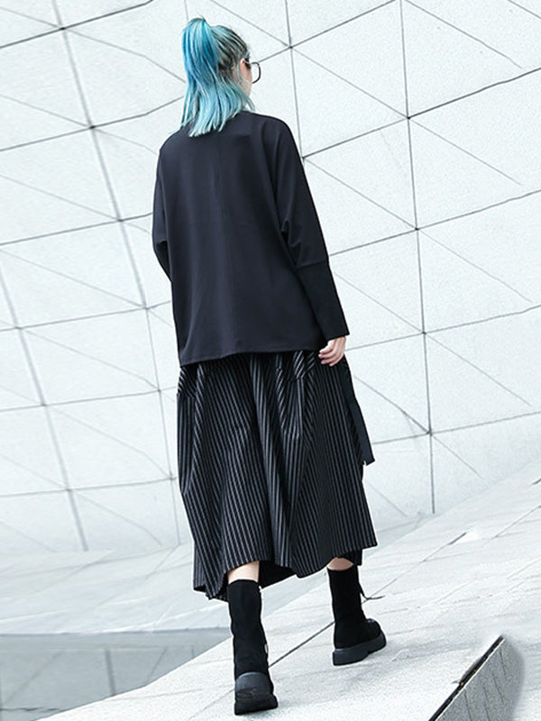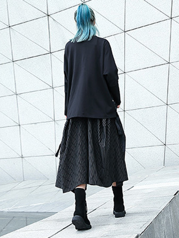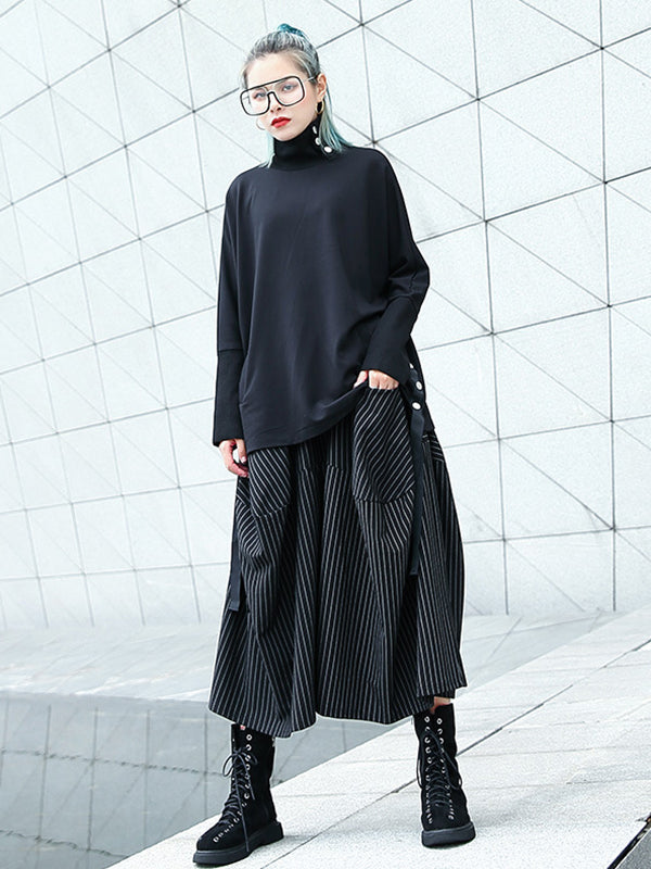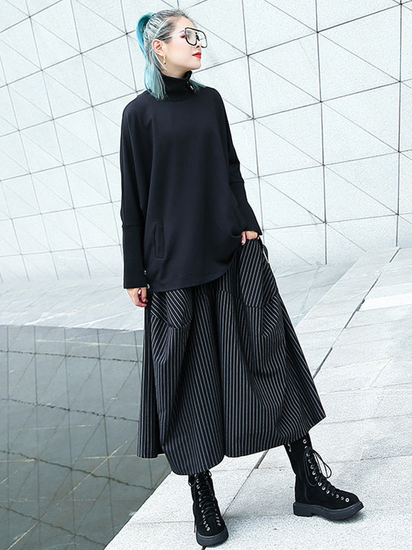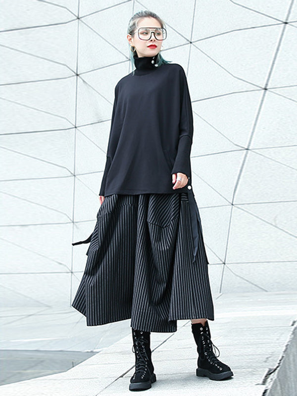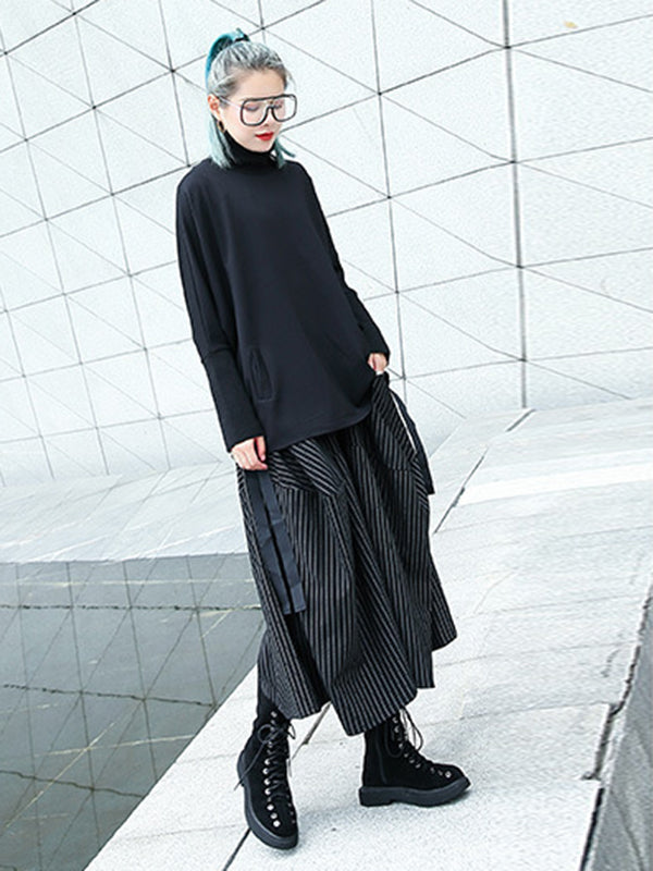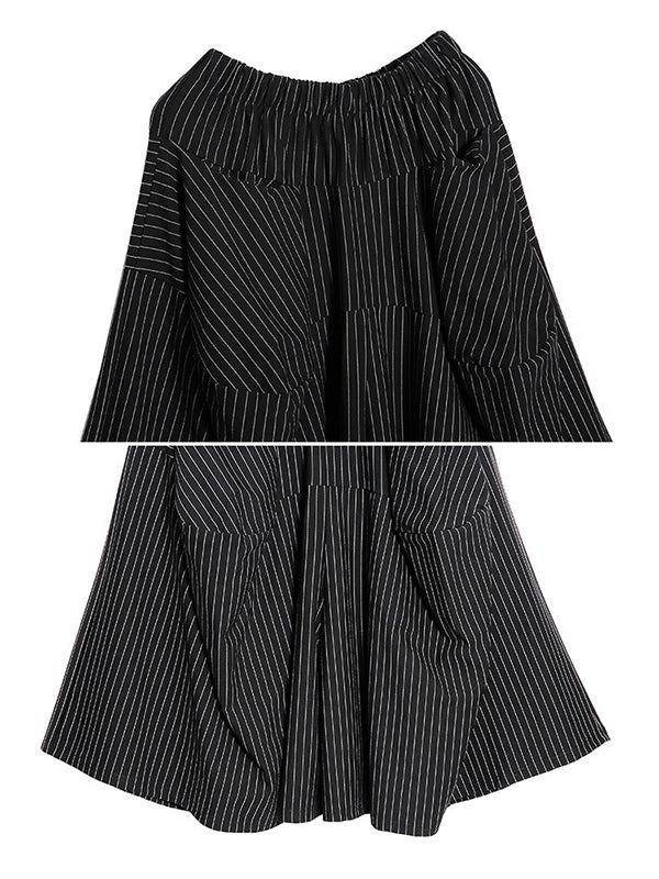 High Waisted Loose Elasticity Pockets Striped Culotte Pants