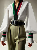 Maniche lunghe a contrasto allentati a colori a V Curse e camicie