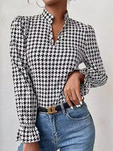 Maniche lunghe sciolte elasticità Houndshooth Split-giumt V-scollo a V e camicie
