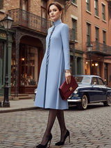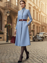A-Line Bodycon Asymmetric Pleated Pockets Solid Color Split-Joint Stand Collar Midi Dresses