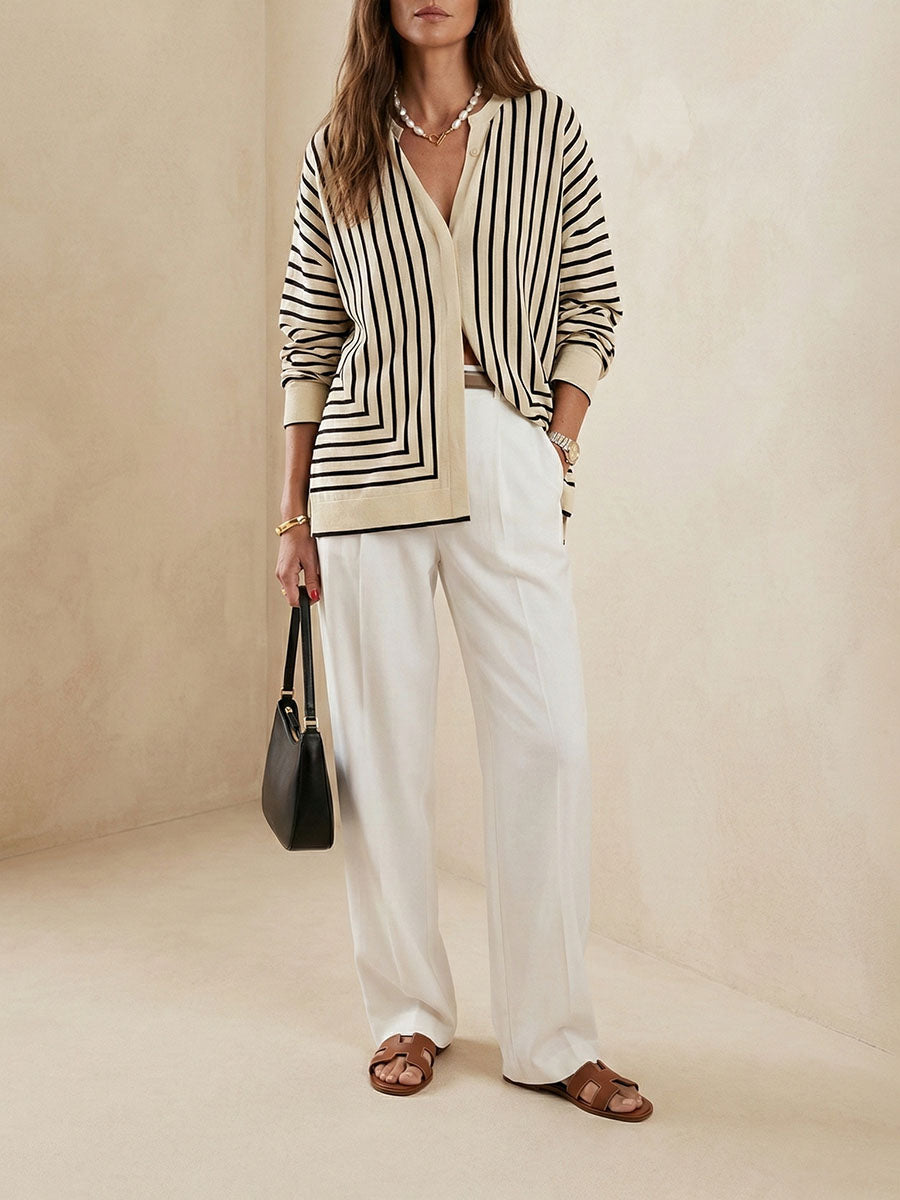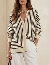Maniche lunghe sciolte a strisce a strisce camicette camicie