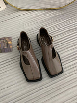 バックルホロースプリットジョイントスクエアツーフラットシューズローファー