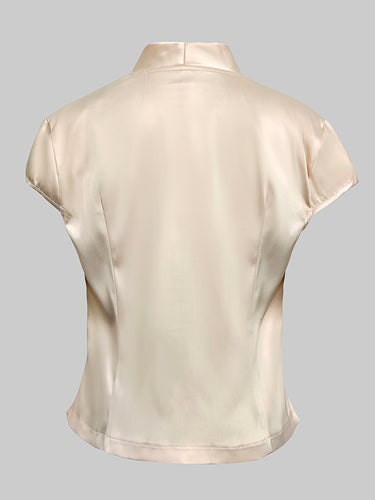 キャップスリーブルーズボタン付きソリッドカラーVネックベストトップ