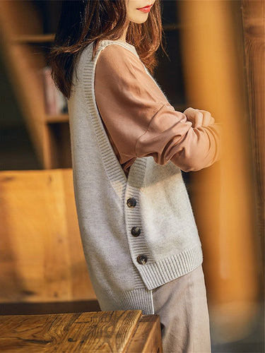 カジュアルなノースリーブのゆるい堅い色の丸いネックニットベストアウターウェア
