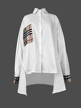 ハイローロングスリーブボタン付き格子縞のポケットスプリットジョイントスプリットサイドラペルブラウスとシャツのトップス