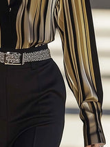 Long Sleeves Buttoned Striped Lapel Blouses&Shirts Tops