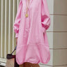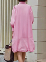 Long Sleeves Loose Buttoned Pleated Pockets Solid Color Lapel Midi Dresses