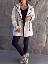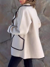 長袖のゆるいボタン付きポケットスプリットジョイントノッチ付きカラーウールコート