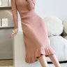 長袖のゆるいフリルのしっかりしたソリッドカラーラウンドネックミディドレスセータードレス