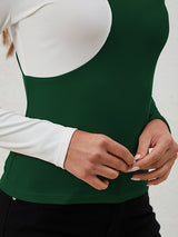 長袖スキニー非対称コントラストカラーホロースプリットジョイントモックネックTシャツトップス