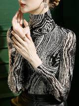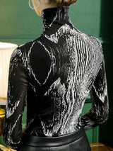 長袖スキニープリントハイネックTシャツ