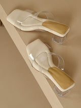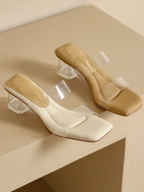 オープントゥスプリットジョイントスクエアトー透明ポンプサンダルスリッパ