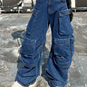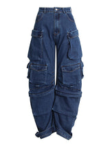 大きなポケットを備えたオリジナルのワイドレッグルーズスプリットジョイントジャンパンツボトム