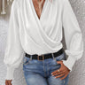 長袖のゆるい弾力性ソリッドカラーVネックブラウスとシャツのトップ