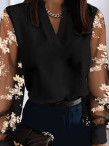 長袖ルーズメッシュスプリットジョイントVネックブラウスとシャツのトップス
