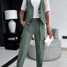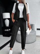 ゆるいボタン張りのストライプVネックベストトップ +ドローストリングポケット9番目のズボンプリーツパンツボトム2ピースセット