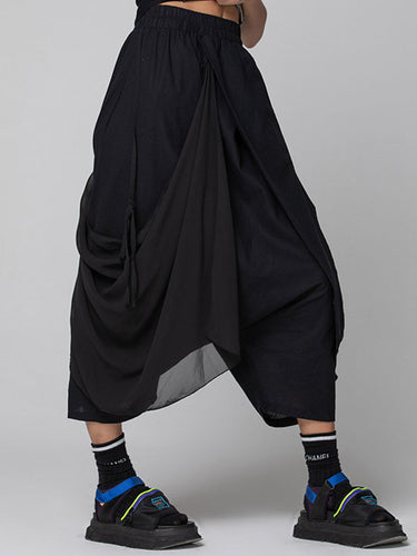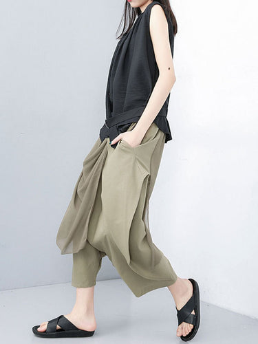 ハーレムパンツは、プリーツの固体9番目のズボンを緩めます
