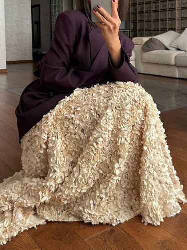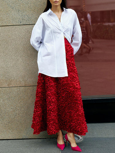 A-lineハイウエストしたソリッドカラー3次元の花のスカートボトム