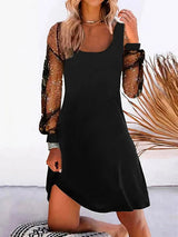 A-line長袖メッシュスプリットジョイントUネックミニドレス